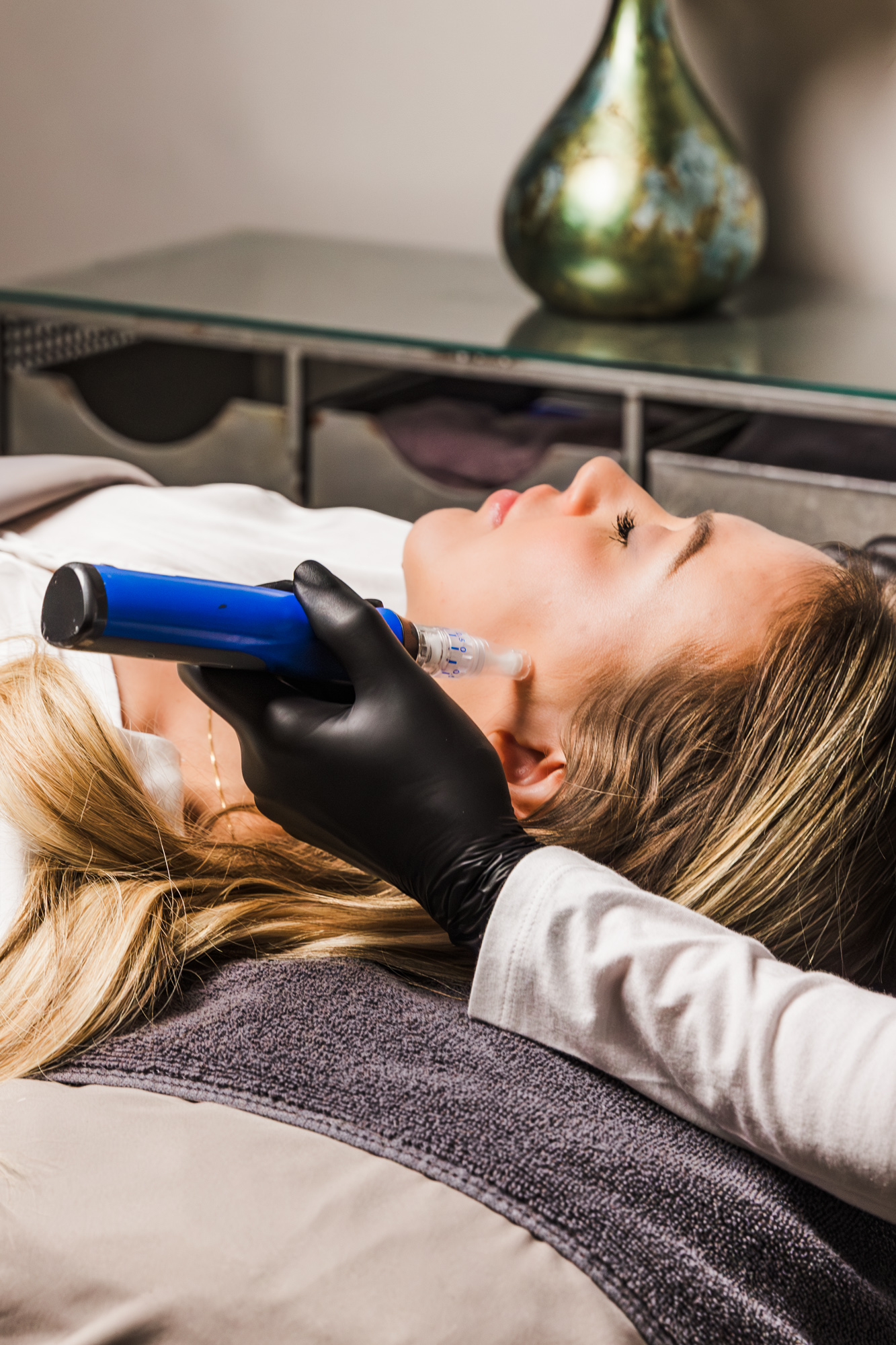 We apply a topical numbing cream before we get started, so the most you’ll feel is some pressure or a light scratching sensation. Your comfort is always our top priority.