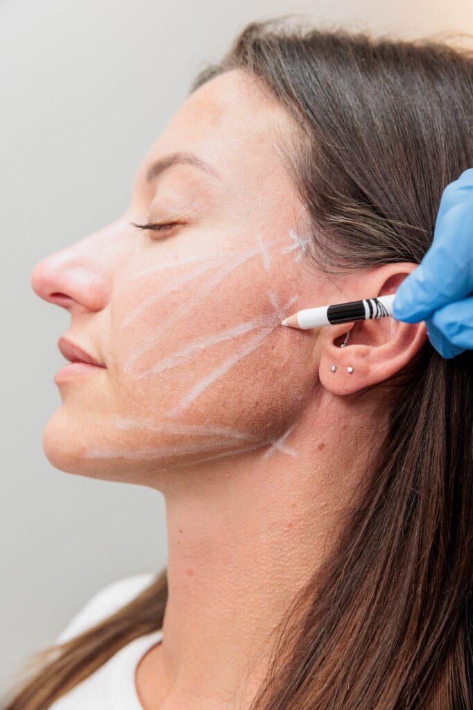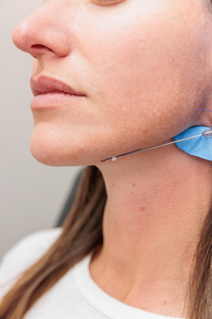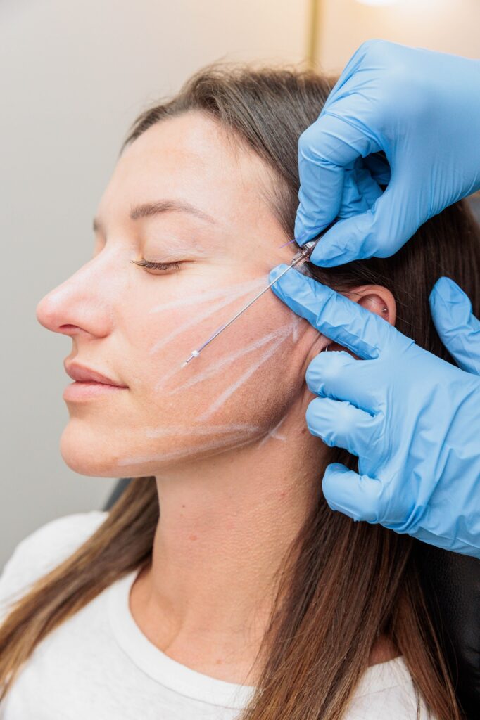 A thread lift uses specialized PDO threads, which are inserted under the skin to lift and support sagging tissue. Your provider places the threads using a fine needle, gently pulling the skin to restore your natural contours.